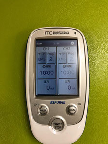 運動神経に電気刺激を与えて、通常の運動よりも効率よく筋肉を鍛える事ができ膝とか痛くて歩けない方の足の筋肉トレーニングもできます。